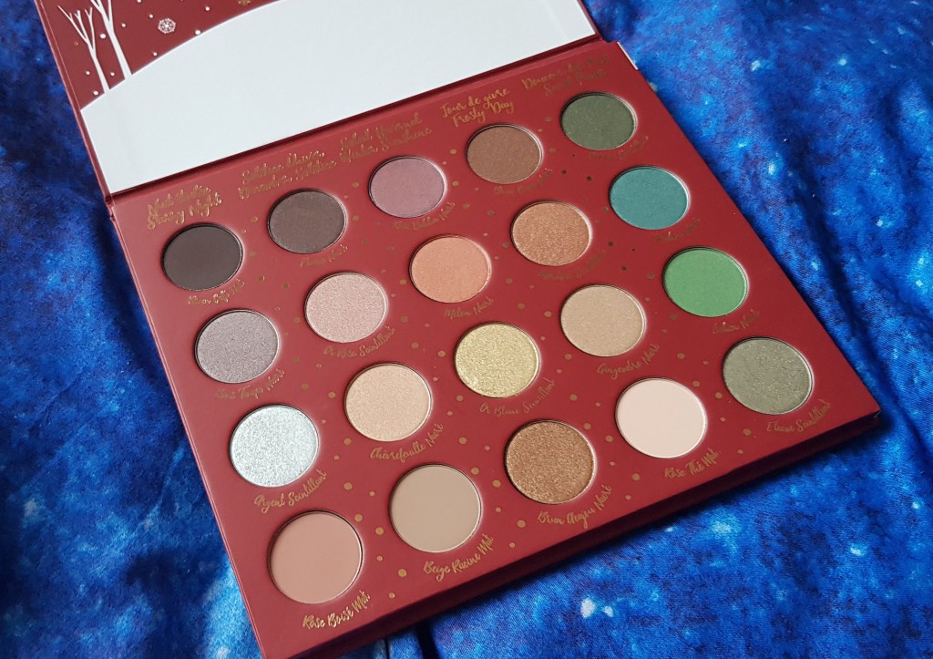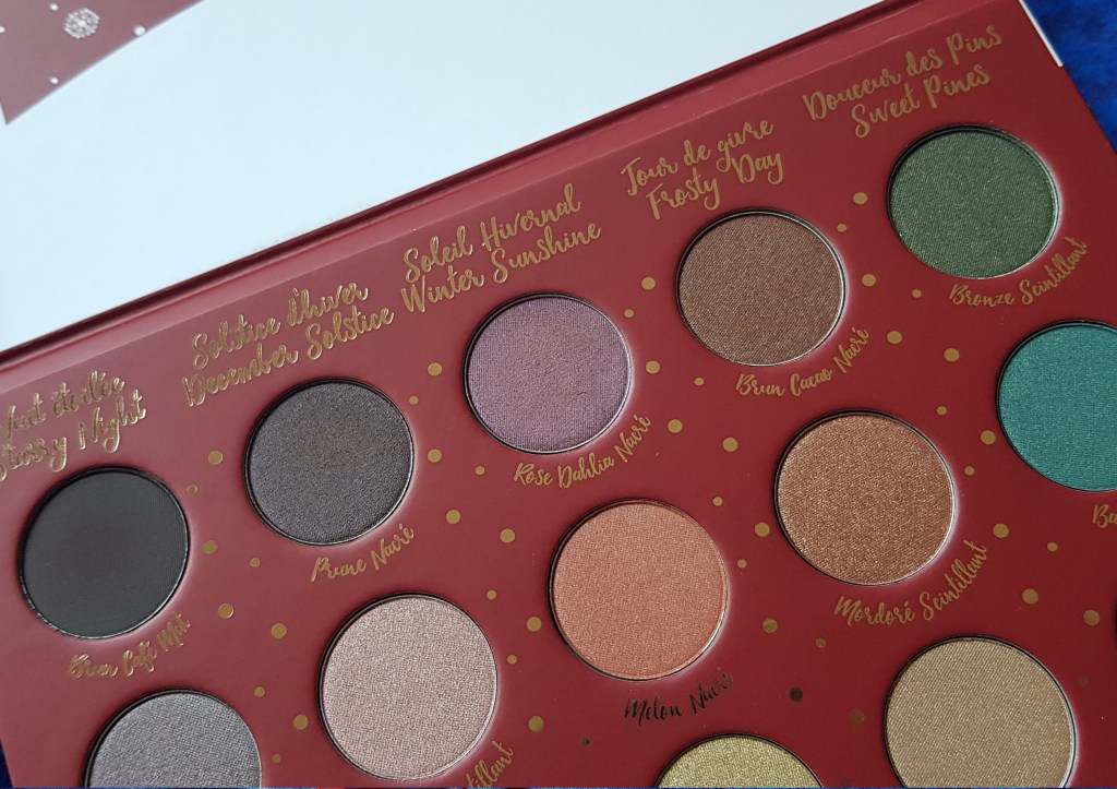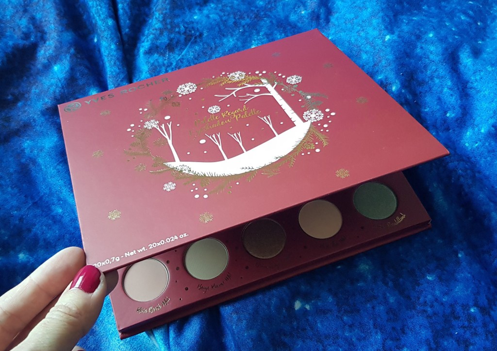 Opakowanie jest bardzo ładne i przyjemne w dotyku. Bardzo podoba mi się tłoczenie na froncie palety, bardzo klimatyczne i nawiązującej do zimowej kolekcji Yves Rocher.